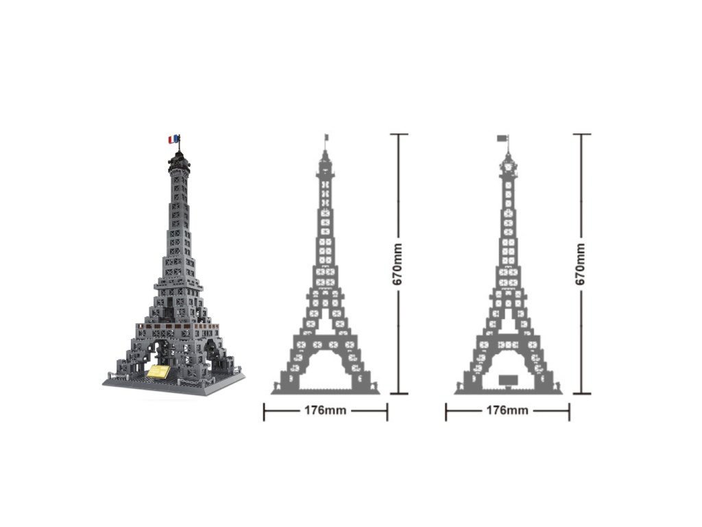 Postavte si vlastní symbol Paříže a jednu z nejslavnějších staveb světa - Eiffelovu věž. Prémiová stavebnice WANGE nabízí 976 pečlivě vyrobených dílků, díky nimž vznikne model s výškou 67 cm a půdorysem 17,6 × 17,6 cm.