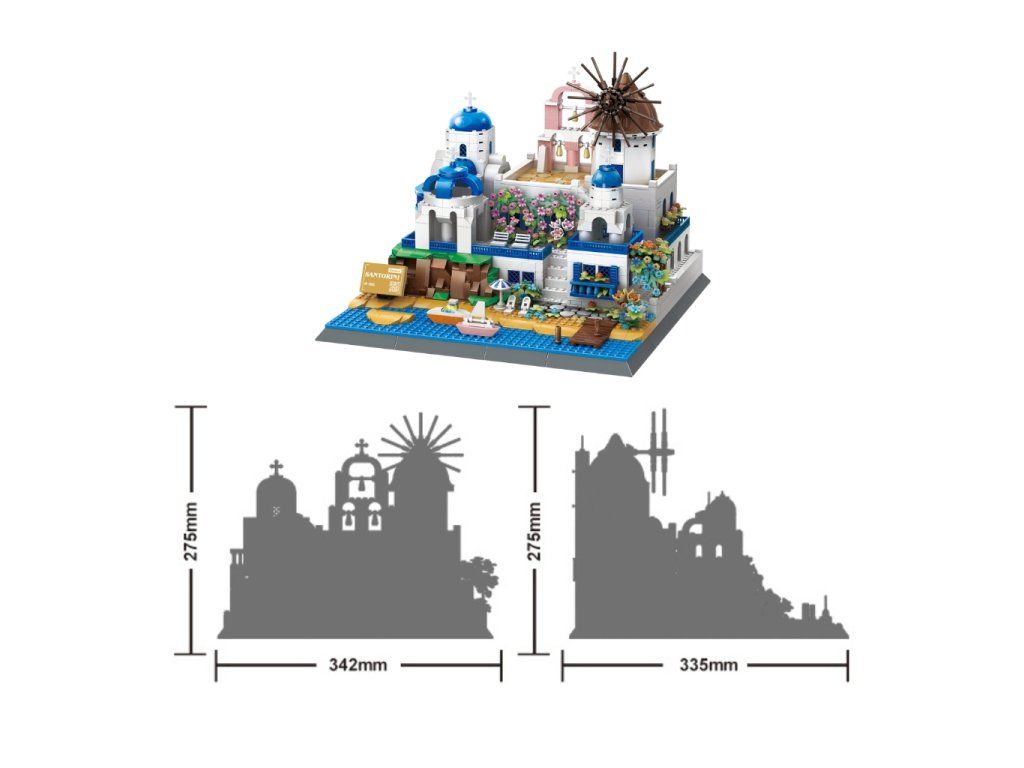 Postavte si kousek řeckého ráje a přeneste se na sluncem zalitý ostrov Santorini, známý svými bílými domky, modrými kopulemi a výhledy na Egejské moře. Tato stavebnice věrně zachycuje romantickou atmosféru ostrova v podobě malebné architektonické scenérie.